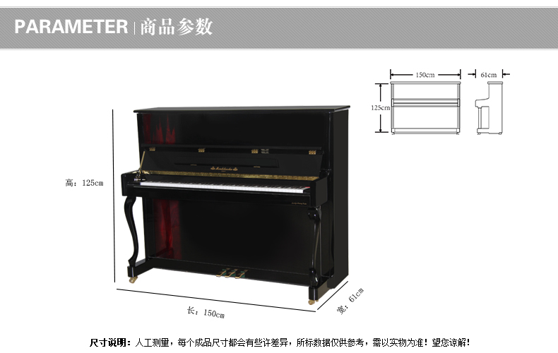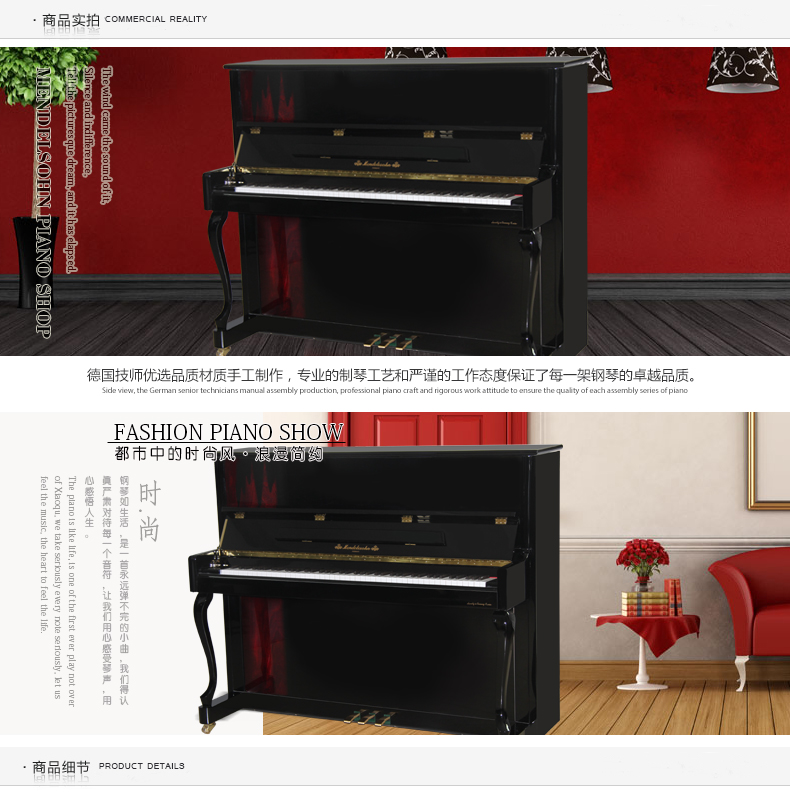 采用彰顯尊貴的歐式外型設(shè)計(jì),精選高品質(zhì)材質(zhì),雅致外觀與超凡音質(zhì)相結(jié)合。德國高級(jí)技師手工組裝制作,專業(yè)的制琴工藝和嚴(yán)謹(jǐn) 的工作態(tài)度保證了每一架進(jìn)口系列鋼琴的卓越品質(zhì)。同時(shí),每一架進(jìn)口系列鋼琴在出廠時(shí)都須經(jīng)過嚴(yán)格的檢驗(yàn)、調(diào)試、整理,保證每位 使用者都能感受到它的純真的音質(zhì)。