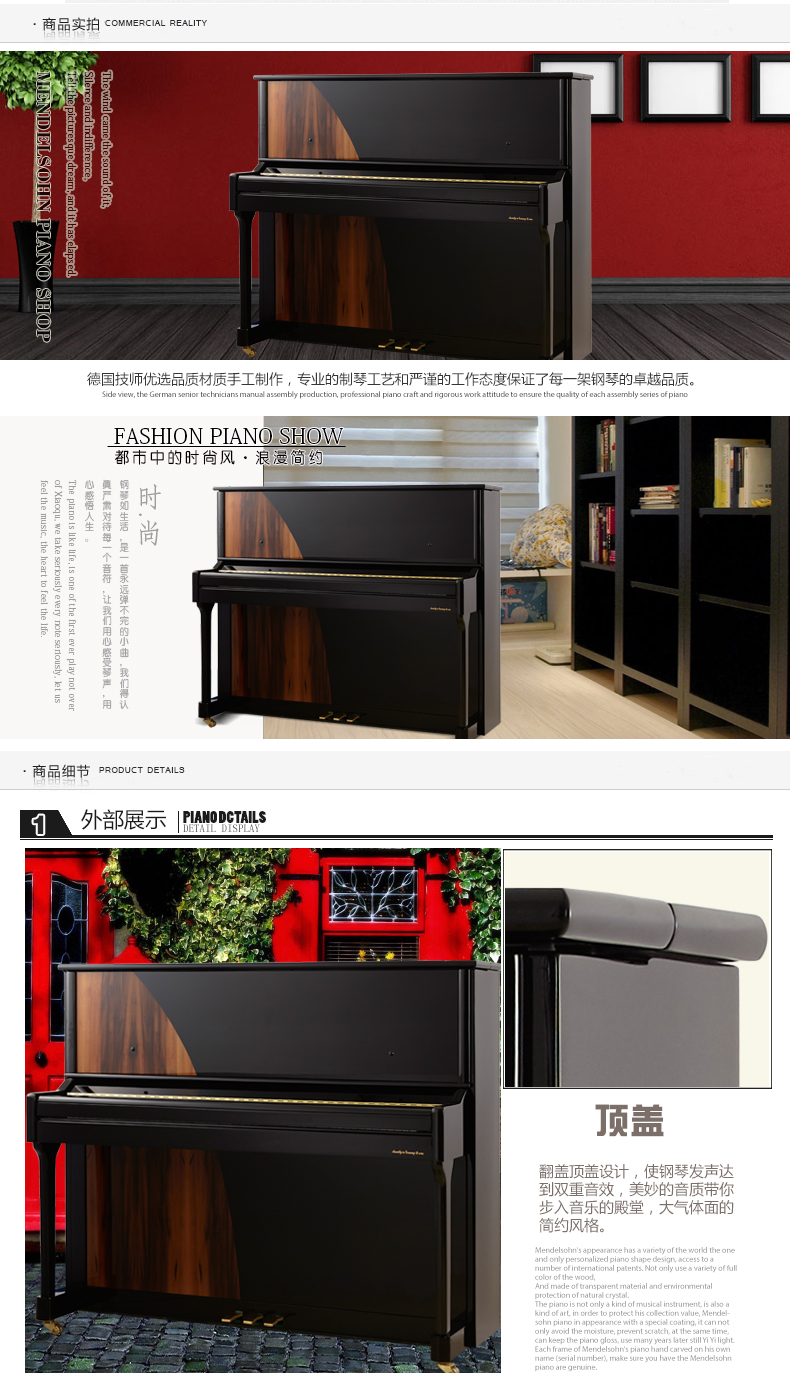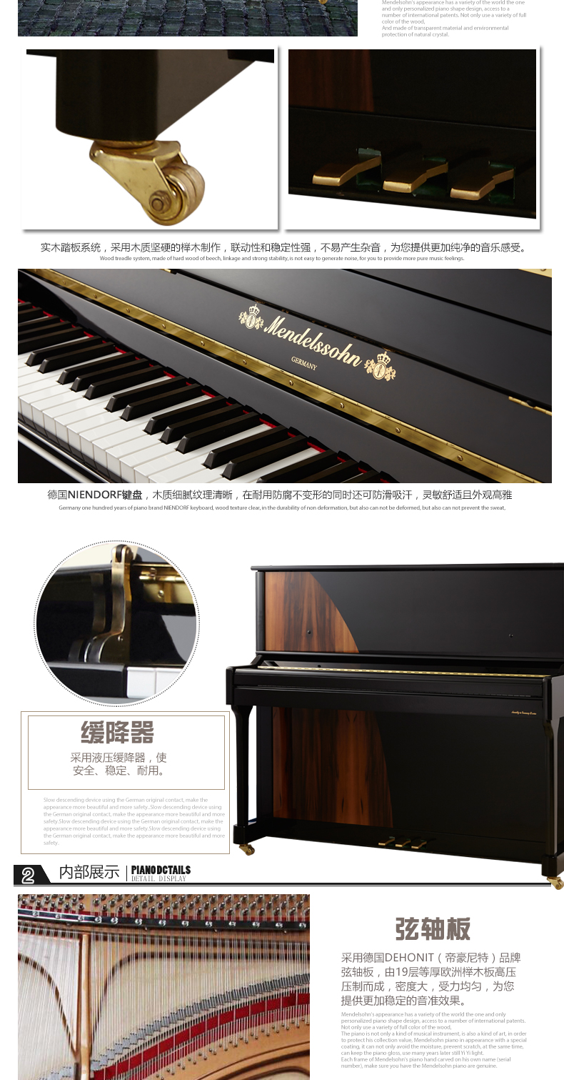 踏板系統:實木踏板系統,采用木質堅硬的櫸木制作,聯動性和穩定性強,經久耐用,腳感舒適,不易產生雜音,為您提供更加純凈的音樂感受。