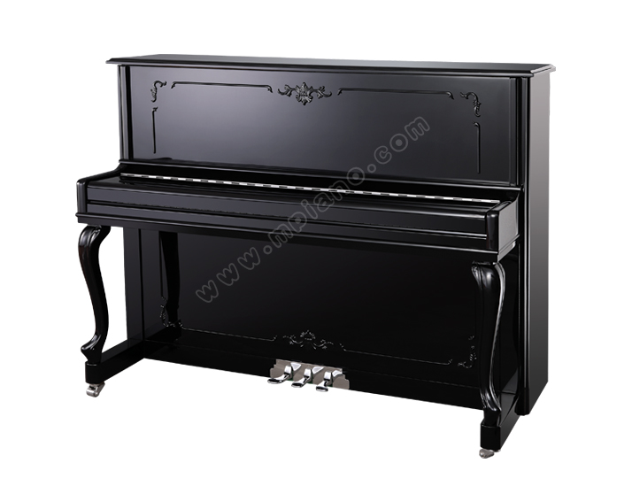 黑色、亮光,弧形花紋雕刻琴腿、小三角單邊雙頂蓋設計
