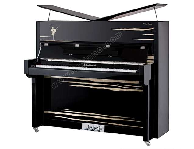 黑色亮光主色調中,一位妙齡少女在夜幕下的海灘翩然起舞,唯美的芭蕾、悠揚的琴聲,亦琴亦詩亦畫,舒展的蝴蝶雙翼琴蓋、簡潔流暢的直腿靈動十足。 本款鋼琴是由“當代李斯特”美稱的德國門德爾松鋼琴簽約藝術家弗拉基米爾·莫吉列夫斯基大師親自定音并簽名的高端藝術佳作。