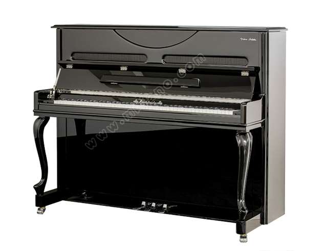 該款琴為經典的黑色亮光琴身,倒半月型上門板,配以專業音箱布發音窗,弧形花紋雕刻“虎爪”琴腿,巧妙的采用東方古典家具原素,整體外形東西文化兼容,典雅端莊又不顯沉悶。 本款鋼琴是由“當代李斯特”美稱的德國門德爾松鋼琴簽約藝術家弗拉基米爾·莫吉列夫斯基大師親自定音并簽名的高端藝術佳作