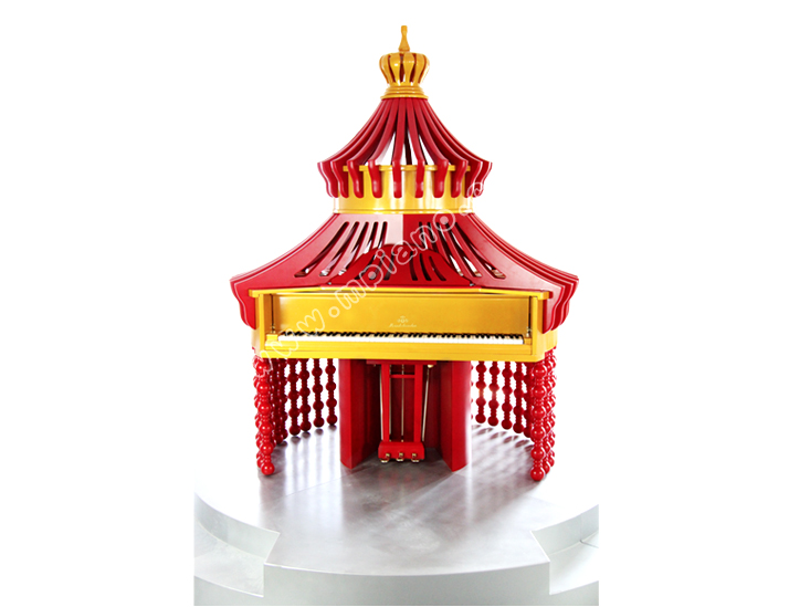“皇冠”琴的設計理念源于“門德爾松”品牌愿景——打造“皇冠”級鋼琴品牌,該鋼琴高225cm,最大直徑180cm;配以臺階式底座:高42cm,直徑為328cm。這款鋼琴由德、中資深設計師聯合設計,將歐洲鋼琴的設計精髓和中國元素相結合,將時尚與品味相融合。該鋼琴頂端采用歐洲風格的皇冠設計,內置藍寶石水晶球,熠熠生輝;整臺鋼琴,遠看像個大“皇冠”,給人以優雅尊貴的視覺享受;采用中國古典式建筑流線型的架構,使整體造型優美大氣,虛實結合的琴腿使整架鋼琴的穩固性和平衡性都大幅度提升;圓弧形鏤空發音孔設計,保證了鋼琴的純真音質;并采用德國工藝純手工制作完成,其柔和純美的音質和卓越的彈奏性能,也將帶給您非凡的享受和樂趣;皇冠:身份高貴的象征,神圣的代表;更是高檔會所、星級酒店的吉祥之物。