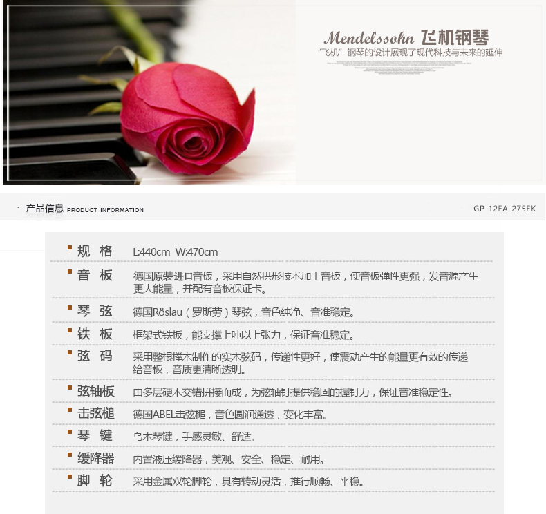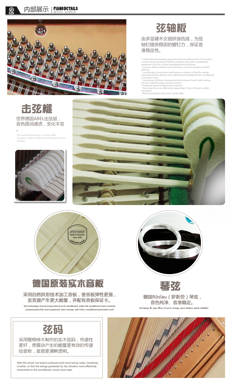 和活力。此款鋼琴采用整體線型框架結構,運用多層發音孔這一鋼琴工藝,在保證鋼琴最原始的音質之余,更彰顯了產品的品質。